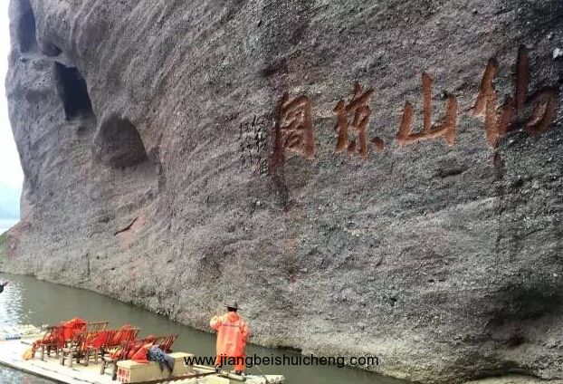 竹筏漂流的路線,從竹筏碼頭到仙水巖景區(qū)的仙女巖碼頭,沿途丹山碧水,景色美不勝收。