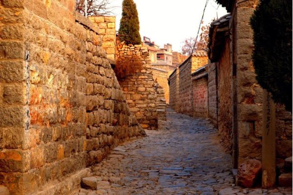 集合出發(fā),乘車赴石家莊井陘(車程約4小時(shí))石頭村,是一部用石頭書寫的村落史詩。于家石頭村位于河北省井陘縣城微水鎮(zhèn)西南約十五公里處,建于明朝成化年間,距今已有五百多年的歷史,這個(gè)石頭村在四面環(huán)山的洼地,山巒環(huán)抱,綠樹掩映,不到村頭見不到人家。當(dāng)走過彎彎曲曲的山路,走進(jìn)這個(gè)村子,一下就置身于石頭的世界:石樓石閣,石房石院,石桌石凳,石磨石碾,石街石巷,石橋石欄,村路也是古老的石頭鋪就的。鋪路的石頭多是青灰色,石質(zhì)堅(jiān)硬,歲月的摩擦使石頭棱角圓潤光亮,但這石路光而不滑,干爽潔靜,走在上面,腳下發(fā)出輕輕而有韻律的"噠、噠"的聲響,這聲音讓人心中泛起一股寧靜、幽遠(yuǎn)的情思。站在這石頭街上,環(huán)顧四周,與腳下的石路相連的街、巷、胡同全是青色的石路,路的兩旁全是石頭房院,隨便推開一扇石門,便又會(huì)看到一個(gè)石頭筑造的小天地。