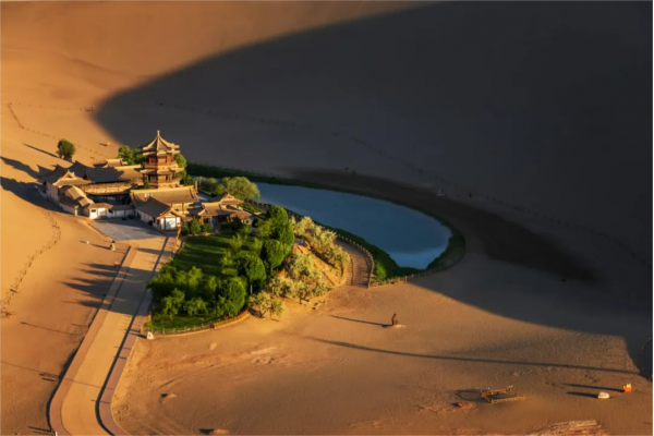 之后我們將前往鳴沙山,【鳴沙山月牙泉】歷來以“沙漠奇觀”著稱于世,是敦煌的名片之一,沙漠與湖泊共生,月牙泉也被稱為沙漠第一泉。大家可以選擇徒步或者騎駱駝上山,從山頂鳥瞰,西域大漠景色讓人心曠神怡,黃沙萬里長,遠(yuǎn)處的駝隊,正悠悠而來;在這里靜待日出東山,大家就可以觀賞到一場壯觀的日出盛宴,當(dāng)那火紅一點(diǎn)一點(diǎn)地從深淵中奮力躍出,直到這輪旭日沖破云層,溫柔卻有力量的晨曦落在鳴沙山起伏的丘陵上,直到染得天地同色,這份似乎要點(diǎn)燃整個西域大漠的壯闊絲毫不遜于“大漠孤煙直,長河落日圓”。
