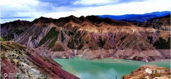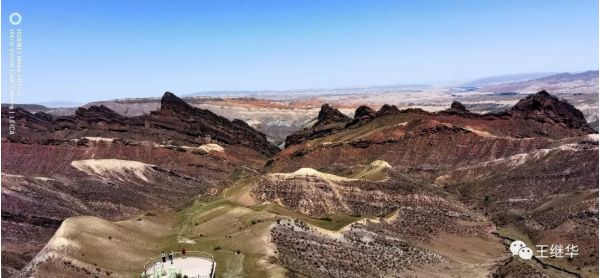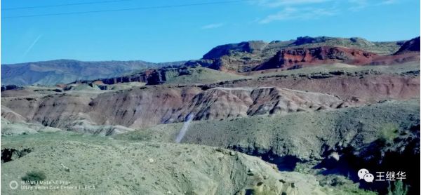 江山如此多嬌。此段山脈山體雄渾巍峨,呈赭紅色,,橙、黃、青、綠相雜其間,