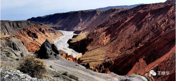雖然緊張,還是被這十分壯觀的山體,復(fù)雜的谷底,湍急的河水,沖刷的像大樹一樣的圖案,紅綠相間絢麗的山體所深深地吸引,流連忘返。直到劉會(huì)長(zhǎng)呼我,才從美麗的畫卷中驚醒出來。太美了!心中不斷的贊嘆。