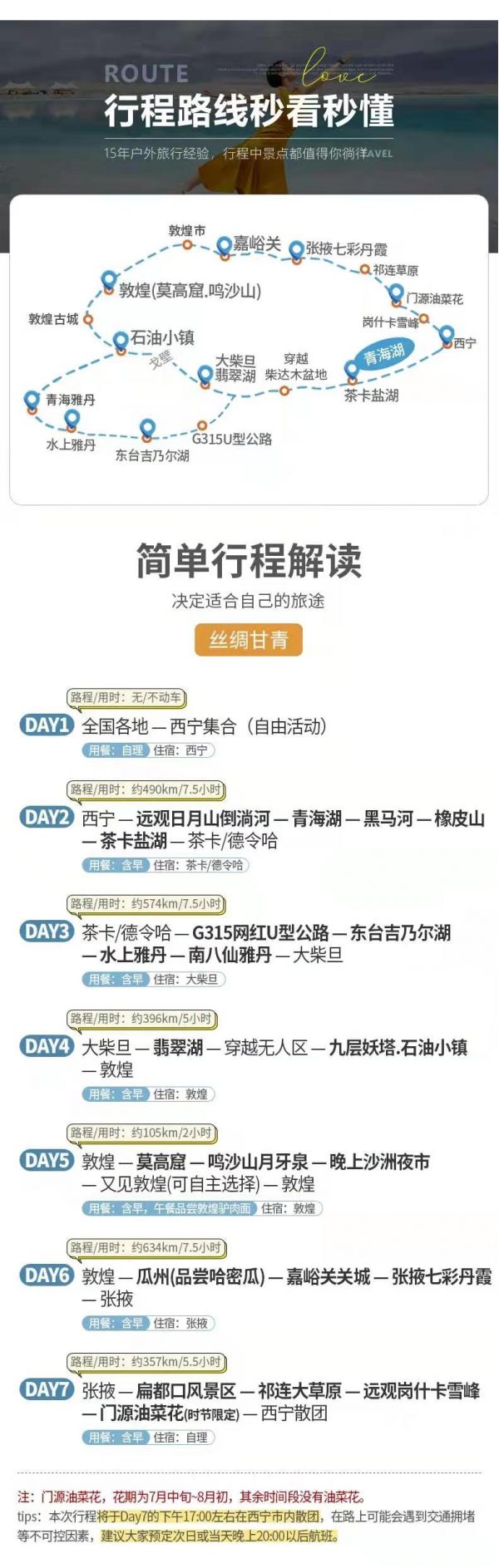 請(qǐng)對(duì)應(yīng)使用我方玩聚甘青夢(mèng)境小團(tuán)7日行程,因使用其它行程造成的投訴,責(zé)任自負(fù);請(qǐng)仔細(xì)閱讀以上行程文檔,同意并保證遵守我方安排,以免為您帶來(lái)不必要的麻煩;如產(chǎn)生合同糾紛或人身意外事故,按《中華人民共和國(guó)合同法》、《道路交通法》、《保險(xiǎn)賠償條例》裁定;本行程作為旅游合同附頁(yè)與旅游合同同等法律效力。