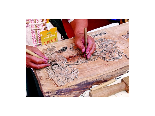 “您在雕刻什么?我能體驗(yàn)一下嗎?”“把印版放平,刷好顏料,再把紙端正地放上去……”騰沖農(nóng)民畫傳承人賈明安一邊帶游客體驗(yàn)印甲馬,一邊介紹:“甲馬在古代是用來祈福祭祀的,后來逐漸成為雕版藝術(shù)。騰沖有悠久的木刻雕版印刷歷史。”他指著一旁未雕刻完的作品說,“喏,完成這樣一幅作品要五六天。木頭多選用結(jié)構(gòu)細(xì)膩、木質(zhì)良好的梨木,這樣才能雕刻出精細(xì)的圖案。”你一言我一語的對(duì)話間,游客在賈明安的幫助下既體驗(yàn)到了印甲馬的過程,又對(duì)騰沖甲馬這項(xiàng)非遺項(xiàng)目有了更多了解。