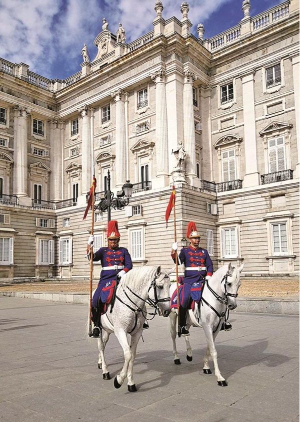 據(jù)導(dǎo)游介紹,西班牙馬德里皇宮建造設(shè)計(jì)參考了巴黎盧浮宮的草圖,王宮內(nèi)部每個(gè)房間都各具特色。皇宮里面藏有不少珍寶級(jí)的繪畫、瓷器及其他皇室用品?,F(xiàn)在西班牙皇宮已被辟為博物院,雖然皇宮仍然是官方的皇室駐地,但國(guó)王并不居住在此,只是偶爾來(lái)這里辦公,如果有幸看到皇宮屋頂?shù)膬擅嫫鞄猛瑫r(shí)升起,那就表明國(guó)王恰好到這里辦公。
