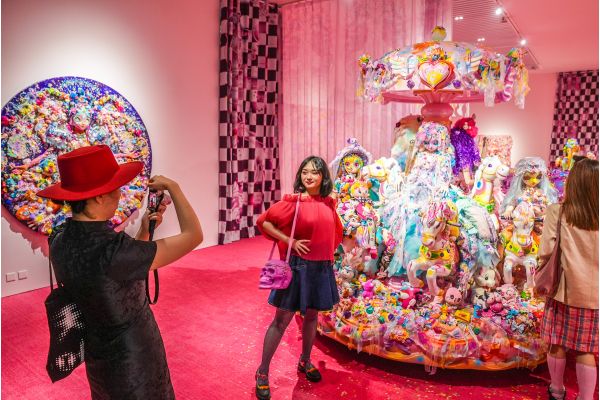 SKIRUA的未來樂園”,展示色彩絢麗的玩偶、貼紙、飾品等。