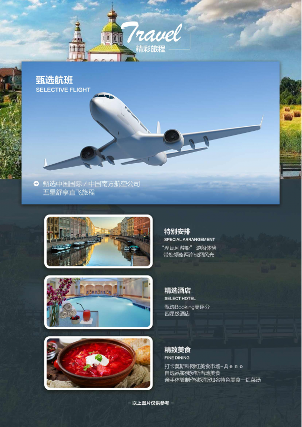 今日機(jī)場(chǎng)集合,美好的旅程即將實(shí)現(xiàn),甜美的夢(mèng)境,引領(lǐng)你走向古典主義的夢(mèng)幻俄羅斯。