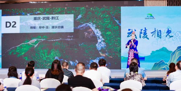 活動(dòng)現(xiàn)場(chǎng),土家幺妹廖珊以“峽谷福緣·武陵相見”為主題,全方位推介了黔江豐富的自然資源和民俗文化,以及“山水韻”“峽谷城”“武陵風(fēng)”等特色文旅產(chǎn)品和精品旅游線路,帶領(lǐng)與會(huì)嘉賓“云游”黔江。