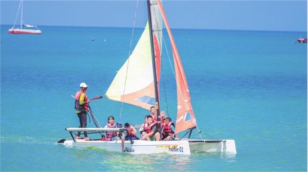 發(fā)力體育旅游,讓景區(qū)“動(dòng)力”十足。2021年,天涯海角聯(lián)手蜈支洲島籌建了西部天涯海洋運(yùn)動(dòng)俱樂部項(xiàng)目,這是三亞大膽探索國企與民企混合所有制改革試點(diǎn)的成果。在推動(dòng)傳統(tǒng)的觀光游向深度旅游體驗(yàn)轉(zhuǎn)型的過程中,天涯海角游覽區(qū)實(shí)現(xiàn)由單一的海上快艇觀光產(chǎn)品,發(fā)展為擁有二十余項(xiàng)體驗(yàn)感好、互動(dòng)性強(qiáng)、趣味性足的“海陸空”旅游產(chǎn)品,為游客體驗(yàn)高品質(zhì)水上運(yùn)動(dòng)提供了新去處。
