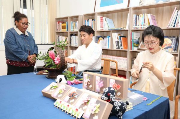 此外,南京剪紙非遺傳承人張鈞還用精湛的技藝現(xiàn)場剪出了斐濟的國花——扶?;?,贏得現(xiàn)場觀眾陣陣掌聲。