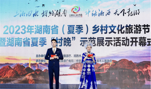 6月3日晚,在熱鬧的苗鼓聲和湘西黃金茶的茶香中,2023年湖南?。ㄏ募荆┼l(xiāng)村文化旅游節(jié)暨湖南省夏季“村晚”示范展示活動(dòng)在湘西州吉首市隘口村開幕。