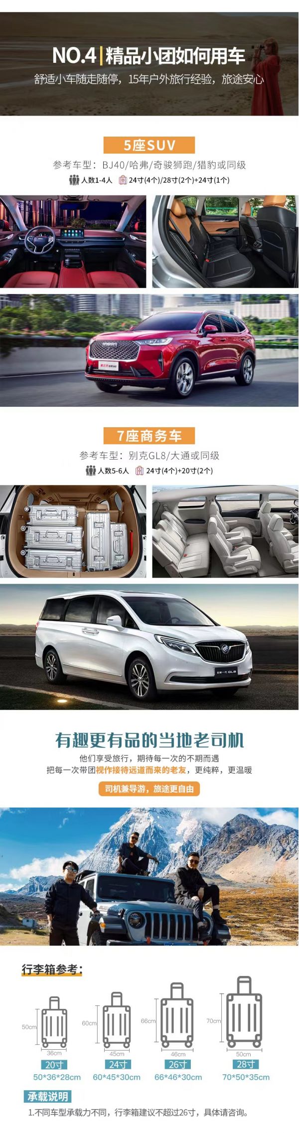 4、如途中遇不可抗因素(如修路、塌方、車輛事故阻礙等)或時間天氣變化我方有權根據情況調整行程線路走向,此舉均是根據帶隊經驗為大家更順利的游玩而做出的改變,希望大家理解和支持,但如造成額外費用由客人自理,望您諒解;若對行程造成影響的,我方將全力協助游客進行解決,但不承擔由此造成的損失,若因此而增加的費用,敬請游客自理。