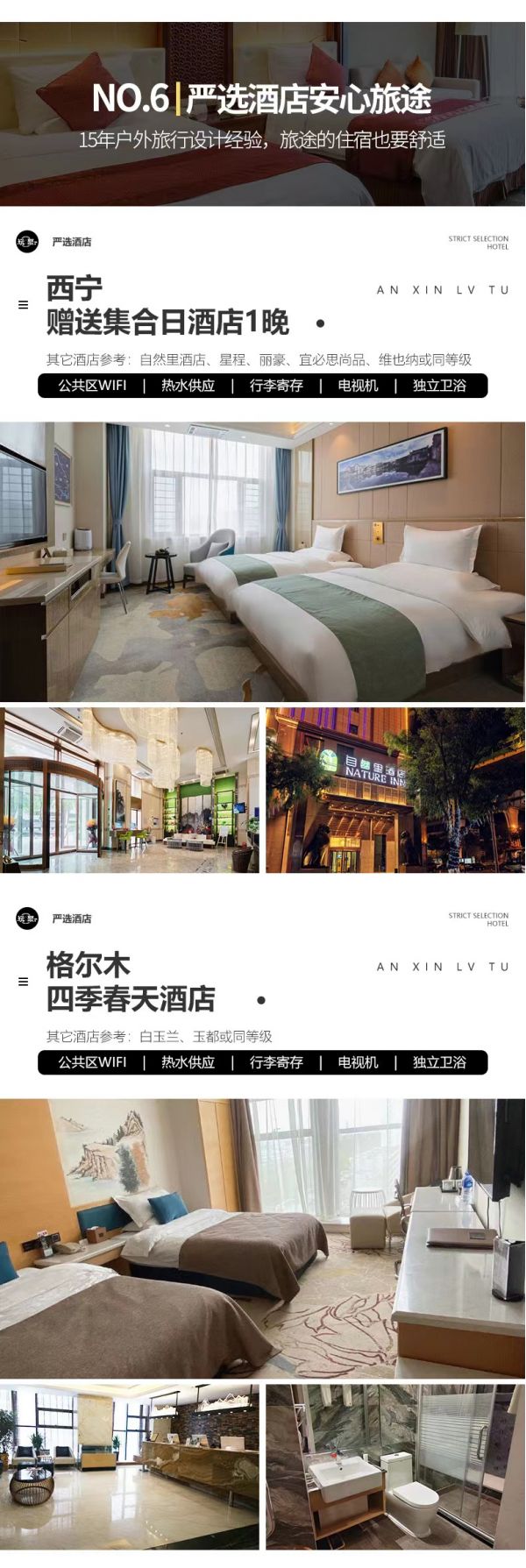 5、該線路為特種線路,當地酒店及餐飲條件無法與城市相比,請游客做好心理準備;賓館內無牙膏牙刷、拖鞋等一次性衛(wèi)生用品,請自備個人衛(wèi)生用品;沿途商店較少,民俗習慣亦有不同,游客可自備咸菜、小吃、干糧等零食,以備不時之需。