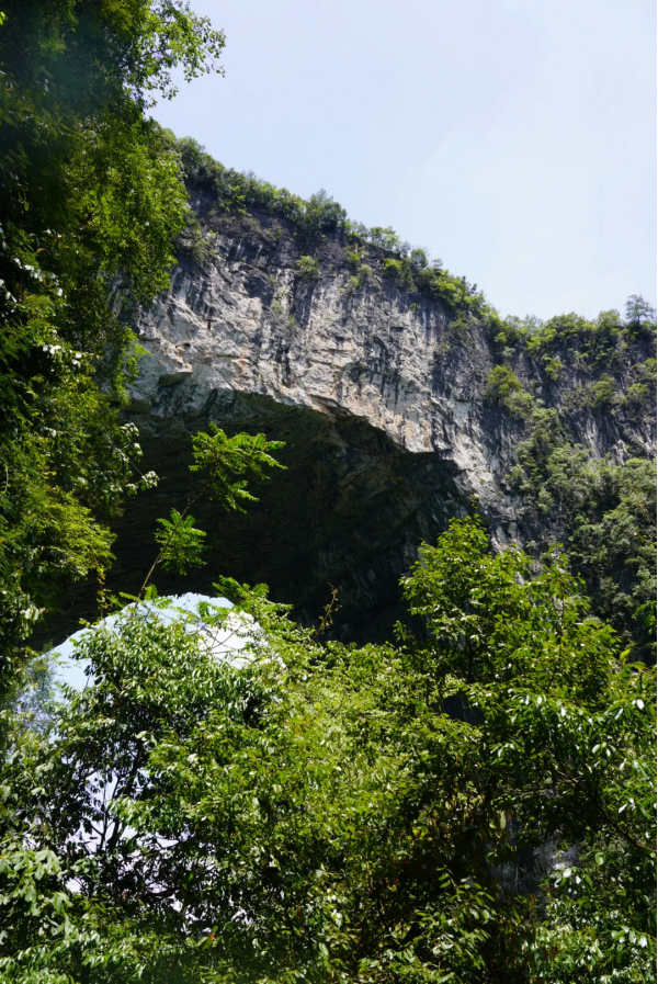 湘西的世外桃源,完全未開發(fā)的徒步路線,臨近之前的一路上還是一片平常的小山村,向下望去時赫然出現(xiàn)一道雄偉的天生橋地貌,與地面落差極高。當(dāng)?shù)厝酥环Q作天生橋。因其兩邊各有一明洞,橋下還暗藏一個黑洞,由上往下的角度俯瞰極像豬鼻,于是命名“”豬鼻嶺“。