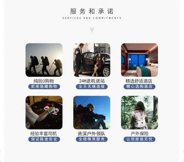 4. 領(lǐng)隊:六人以上優(yōu)秀戶外領(lǐng)隊全程服務(wù),六人(含)以下司機兼領(lǐng)隊服務(wù)