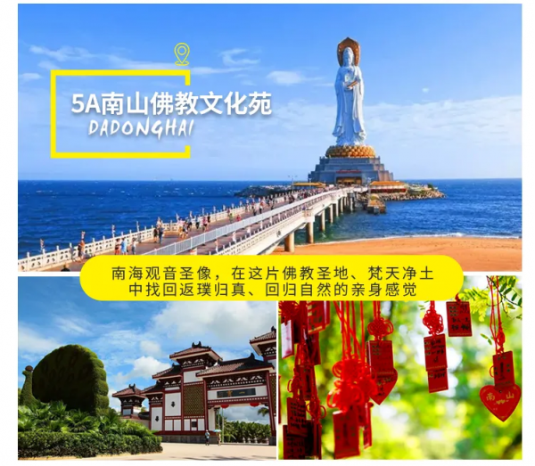 【南山佛教文化苑】(游覽時(shí)間不少于120分鐘)5A景區(qū),在108米南海觀音圣像下虔誠(chéng)祈福,在這片佛教圣地、梵天凈土中找到返璞歸真、回歸自然的親身感覺;