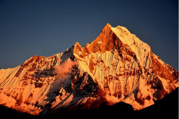 從Nayatahanti到Ghorepani這段路程基本是以上坡路和臺階為主,建議大家使用登山杖協(xié)助登山。沿途我們會看見大片大片的田野、坐落在山林間星星點點的尼泊爾村莊和凜冽峻峭的雪山魚尾峰。魚尾峰海拔6993米,是尼泊爾人心目中的神山,也是一座至今仍無人成功登頂?shù)奶幾臃澹毢环菸唇?jīng)染指的自然之美。