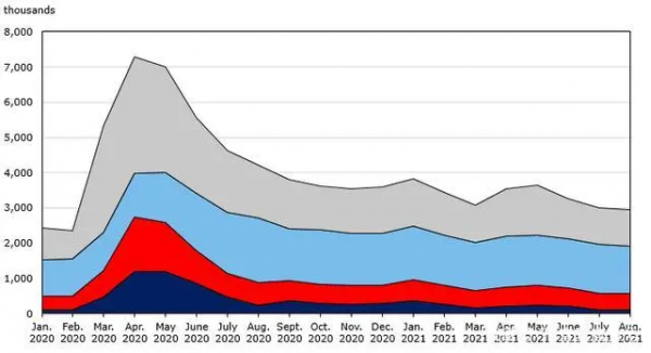 就業(yè)人數(shù)下降的情況出現(xiàn)在安大略省、新斯科舍省、紐芬蘭和拉布拉多省,曼尼托巴省的就業(yè)人數(shù)略有上升。