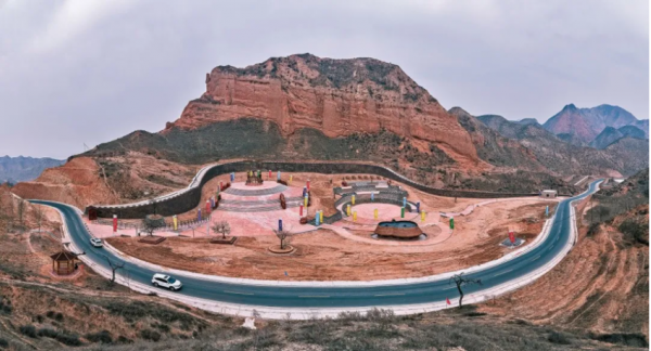 井部落文化廣場以當(dāng)?shù)爻鐾恋纳尘幕拍惯z址為文化線索,結(jié)合現(xiàn)有的鷹巖崖壁景觀和山谷平地,以出土“鷹”首杖的“鷹”為圖騰元素,規(guī)劃“鷹巖祭天”活動場景。這里的摩崖石刻藝術(shù)地展現(xiàn)了古絲綢之路的繁華盛況,可以讓人穿越時空,回味沙井文化歷史。
