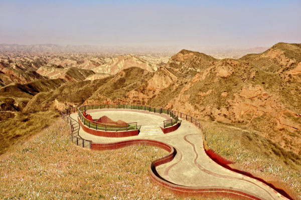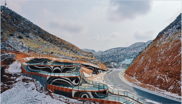絲路霞光觀景平臺以丹霞風(fēng)貌作為設(shè)計背景切入,大面積采用流線型設(shè)計手法,將一帶一路的精神貫穿始終