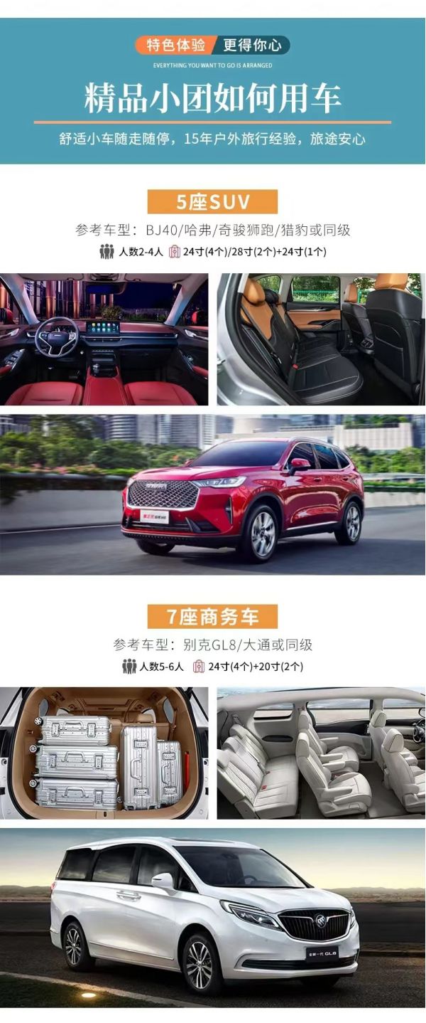 交通:2-8人VIP私享小團(tuán),全程舒適商務(wù)車出行,車型大小根據(jù)實(shí)際人數(shù)安排,保證一人一正座位,且由駕駛經(jīng)驗豐富的司機(jī)為您的出行保駕護(hù)航,報價包含車費(fèi)、油費(fèi)、停車費(fèi)、維修費(fèi)及司機(jī)勞務(wù)費(fèi);