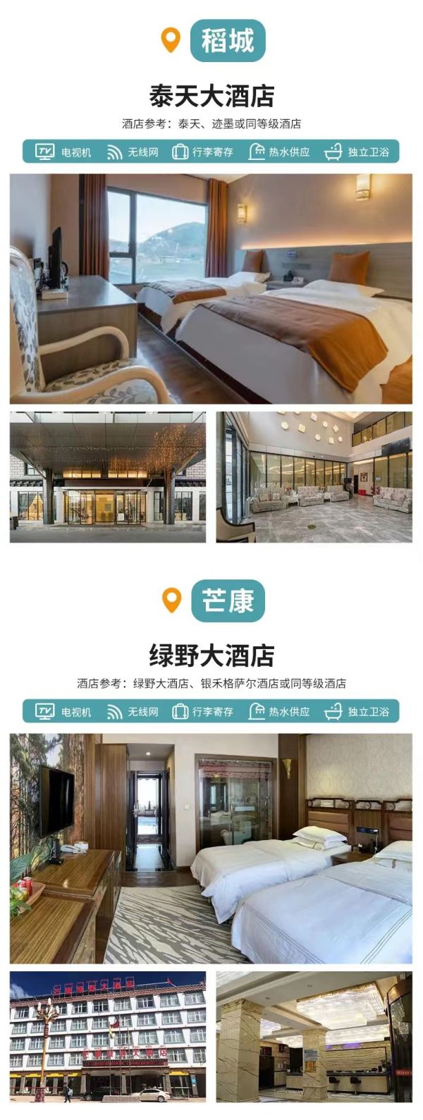 溫馨提示:(1)根據(jù)實(shí)際情況,巴塘縣和芒康縣酒店安排其一入住。海子山