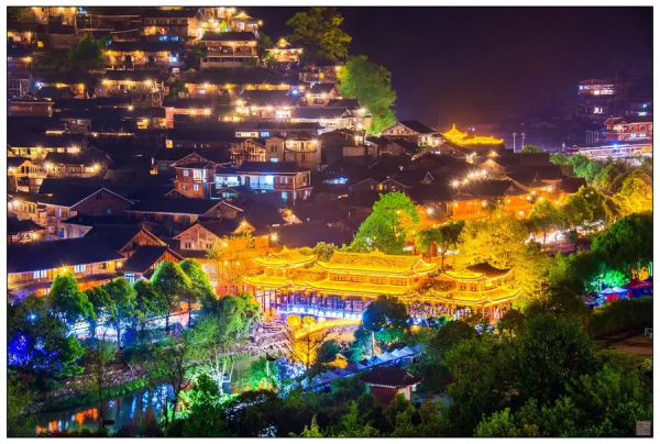 古鎮(zhèn)依山就勢,城墻用巨石筑于懸崖上,由東、西、南、北四座城門及一座長城構(gòu)成,古鎮(zhèn)內(nèi)設(shè)計(jì)精巧、工藝精湛的明清古建筑交錯(cuò)密布,寺廟、樓閣畫棟雕梁、飛角重檐相間,鎮(zhèn)內(nèi)佛、道、天主和基督教四教并存,和諧相處,有興趣的游客,可以細(xì)細(xì)打卡尋寶。