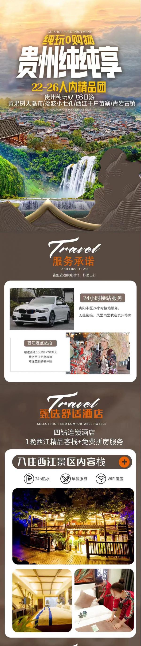 ★備注:貴州為國家三線以下旅游城市,酒店各項(xiàng)標(biāo)準(zhǔn)偏低,主要以衛(wèi)生舒適為主,提前做好心理準(zhǔn)備哦!如客人對上述參考酒店安排不滿意,處理方案如下:1、按實(shí)收價(jià)格退給客人自行訂房,2、可自補(bǔ)當(dāng)時(shí)差價(jià)升級(jí)客人滿意的更高標(biāo)準(zhǔn)酒店!3如若遇以上酒店無房情況下,可安排同等級(jí)酒店,如我社拿到比計(jì)劃酒店檔次更高且價(jià)格等同的情況下,可以給客人免費(fèi)升級(jí)!