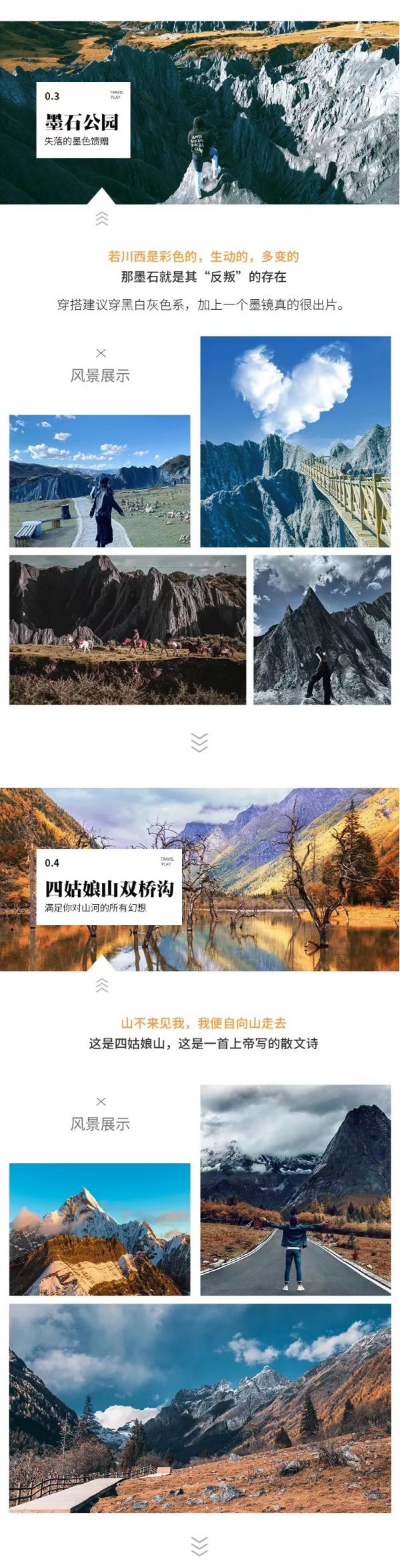 住宿:丹巴縣酒店或甲居藏寨民宿標(biāo)間說(shuō)明”早餐后酒店集合出發(fā),沿岷江而上,沿途經(jīng)都江堰、紫坪埔水利工程,沿都汶高速抵映秀,沿途感受2008年汶川大地震“地動(dòng)山搖、山崩地裂、滄海桑田”后的景象,感悟大自然的力量;觀看震后統(tǒng)一重建的具有民族特色的民居,感受人定勝天的威力。而后從映秀出抵耿達(dá)鄉(xiāng)沿臥龍峽谷,欣賞峽谷小橋、流水、枯藤、老樹(shù)的美麗風(fēng)光,而后經(jīng)巴郎山可觀映山紅、紅白杜鵑花、松蘿、高山草甸等;觀看植物從常綠闊葉林到高山荒漠的垂直變化,感受“一山觀四季、十里不同天”的氣象變遷。中午抵達(dá)四姑娘山。午餐后游玩雙橋溝,景區(qū)開(kāi)闊平坦、景點(diǎn)集中,全程通車(chē)。雖已開(kāi)發(fā),但環(huán)境維護(hù)的出于意料的好,景區(qū)內(nèi)各種服務(wù)包括指示也十分清晰明了,游客們可以更加舒適、方便的游覽整個(gè)景區(qū)。由于整條溝海拔落差達(dá)到一千多米,所以地貌比較豐富,風(fēng)景也完全值得期待。給人遠(yuǎn)離塵世的感悟。游玩盡興后出溝前往丹巴或小金入住酒店休息。