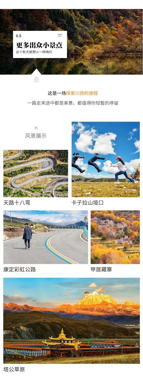 住宿:自理(可代訂)說(shuō)明”早餐后酒店集合出發(fā),前往紅海子,沿著公路下來(lái)可以看到一個(gè)紅海子的觀景臺(tái)這里能看到景區(qū)的全景如果想更加靠近雪山。我們順著公路往下走,就可以看到一條最美的網(wǎng)紅機(jī)場(chǎng)路-康定彩虹公路。