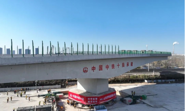 11月30日,聊城西關(guān)街西延項目高架橋工程25000噸T構(gòu)橋梁逆時針旋轉(zhuǎn)96.5°,實現(xiàn)精準(zhǔn)對接,標(biāo)志著聊城西關(guān)街西延項目高架橋工程建設(shè)取得突破性進(jìn)展。