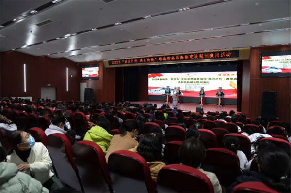 由中共聊城市委宣傳部、聊城市文化和旅游局、聊城市文學藝術界聯合會聯合主辦,聊城市文化館、聊城市京劇院、聊城市豫劇院、聊城市雜技團、聊城高鐵新區(qū)發(fā)展服務中心承辦,東昌府區(qū)文化館、聊城文軒中學、聊城東方教育集團協(xié)辦的2023年聊城市“百靈鳥”文化志愿服務項目“兩河之約 遇見高鐵”濟鄭高鐵建設慰問演出活動在聊城文軒中學西校區(qū)成功舉辦。