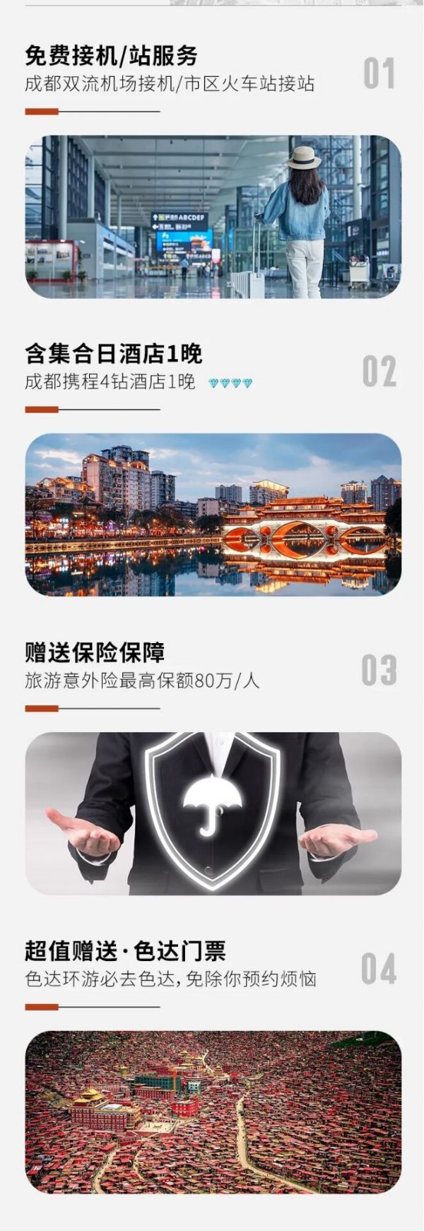 3、行程中不只色達(dá)一個(gè)景點(diǎn),還有更美好的景點(diǎn)等待大家,預(yù)祝大家旅途愉快!