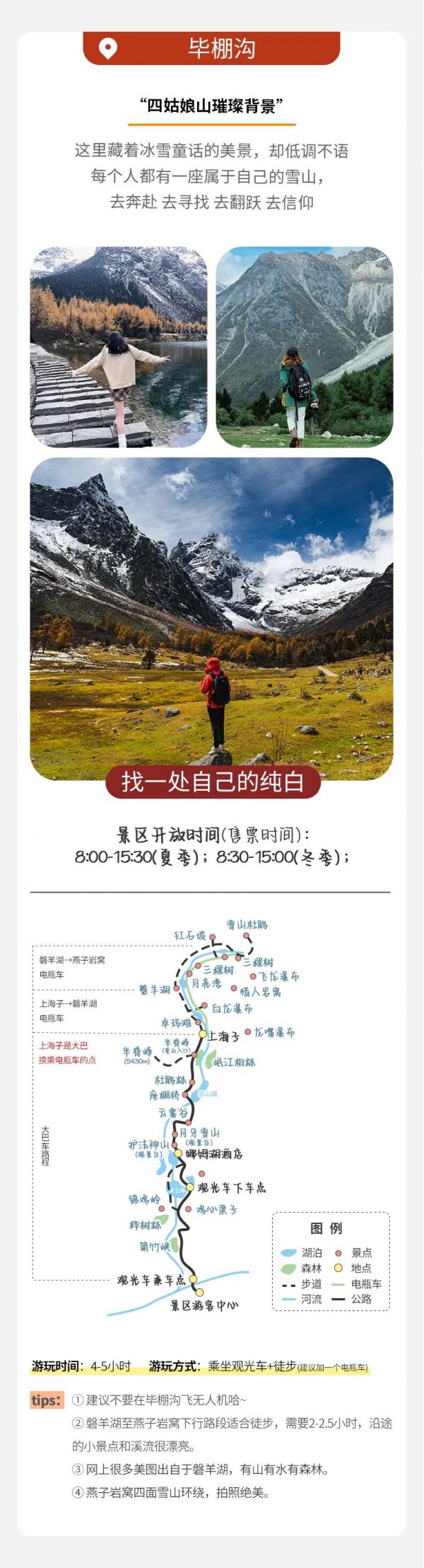 ? 美麗的山水世界【畢棚溝景區(qū)】(游覽時(shí)間3-4小時(shí))換乘景區(qū)觀光車,觀賞古樸的原始風(fēng)光,海龍王潭、女皇峰、娜姆湖、神女十二蜂、盤羊湖,美景讓您流連忘返, 這與大自然最親密的接觸, 留在心里,回味一生!冬季的畢棚溝,銀裝素裹,美不勝收,滑 雪、堆雪人,打雪仗,各種雪上娛樂項(xiàng)目其樂無窮。仿佛穿行如夢如幻的冰雪童話世界,畫下你的身影,將您的祝福永遠(yuǎn)留在這里!穿梭于原始森林,眺綿延崎雪山雄峰、望飛瀉而下 的瀑布、看星羅棋布的海子、覓時(shí)有出沒的山珍野獸,夢幻般的世界讓你領(lǐng)略別樣的異族風(fēng)情。