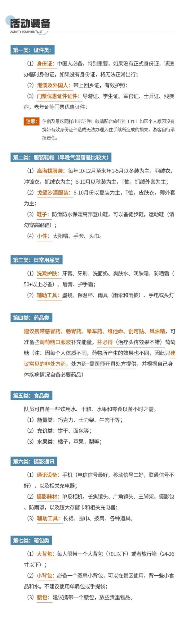 3. 建議隊(duì)員們在集合日抵達(dá)成都后,可在市區(qū)采購一些旅行用品,如零食、佐餐小菜、藥品等;