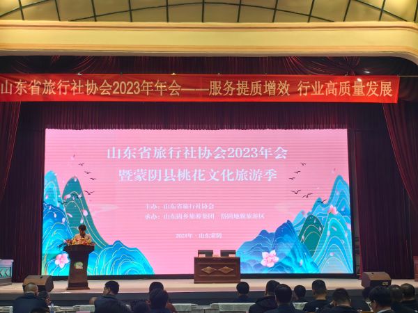 山東省旅行社協(xié)會(huì)2023年會(huì)暨蒙陰縣桃花文化旅游季蒙陰縣委副書(shū)記、縣長(zhǎng)苗運(yùn)全致歡迎辭,詳細(xì)介紹了蒙陰縣整體情況、文旅資源和未來(lái)發(fā)展。他表示,山東省旅行社協(xié)會(huì)年會(huì)在蒙陰召開(kāi),必將有力擴(kuò)大蒙陰旅游的知名度,提升全縣旅游業(yè)的服務(wù)水平,蒙陰縣將以本次會(huì)議為契機(jī),持續(xù)深化“文旅融合、農(nóng)旅融合、紅綠融合”,進(jìn)一步健全研學(xué)旅游體系,塑造區(qū)域民宿品牌,全力爭(zhēng)創(chuàng)全國(guó)全域旅游示范縣,為旅行社提供更好的資源和服務(wù)。