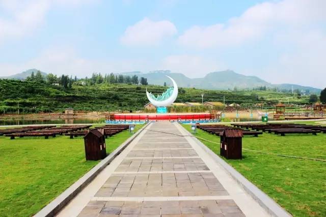 岱崮地貌核心區(qū)-崮園,偌大的留聲機哼唱著《彎彎的月亮》,與月亮灣遙相呼應(yīng)。
