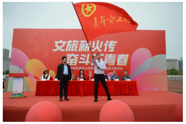 共青團(tuán)濟(jì)南市委副書記林鳴為市文化和旅游局青年突擊隊(duì)授旗。突擊隊(duì)員代表表示,今后要大力弘揚(yáng)“艱苦奮斗、銳意創(chuàng)新、團(tuán)結(jié)奉獻(xiàn)、勇領(lǐng)先鋒”的現(xiàn)代青年突擊隊(duì)精神,積極投身到全市各項(xiàng)文旅工作當(dāng)中,充分展現(xiàn)青年擔(dān)當(dāng)。