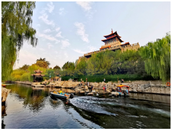 解放閣位于濟(jì)南市歷下區(qū)黑虎泉路東首,省級文物保護(hù)單位。閣高24.1米,連臺基通高34.1米,占地1637.2平方米,建筑面積617.2平方米。臺基東側(cè)貼壁立有“解放濟(jì)南戰(zhàn)役革命烈士紀(jì)念碑”,鐫刻著在濟(jì)南戰(zhàn)役中壯烈犧牲的3764位烈士的英名。