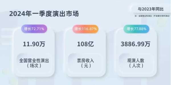 “復蘇即狂熱”。中國演出行業(yè)協(xié)會發(fā)布的數(shù)據(jù)顯示,2024年一季度,全國營業(yè)性演出(不含娛樂場所演出)場次11.90萬場,相當于全國范圍內(nèi)日均超過1300場。