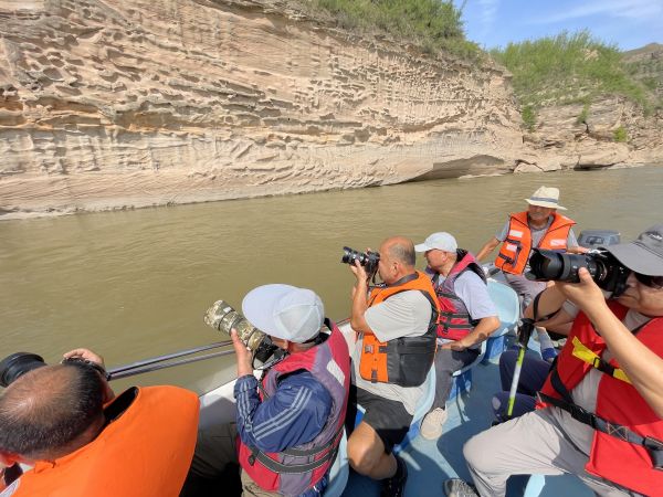 黃河畫廊,位于晉陜黃河大峽谷磧口段,是砂巖石經(jīng)過多年黃河水沖刷、風化、自然形成的浮雕壁畫。乘坐游艇到黃河中才能看到"浮雕"。此處參觀1小時。