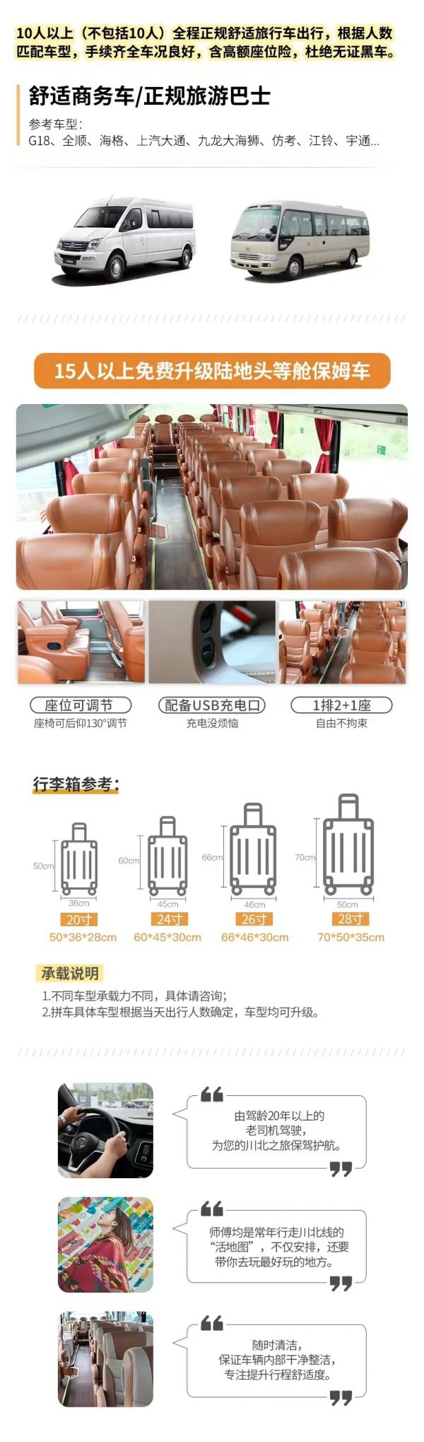 服務(wù):優(yōu)秀領(lǐng)隊(duì)服務(wù)(2-10人司機(jī)兼向?qū)В?1人及以上配專職領(lǐng)隊(duì),已含領(lǐng)隊(duì)食宿門票);