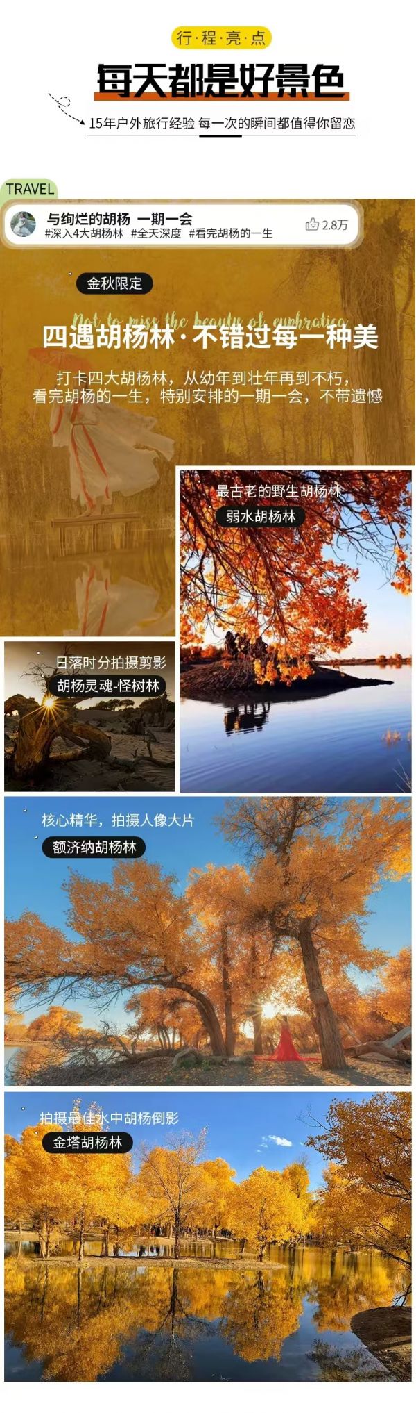 3. 額濟(jì)納金秋盛宴每年只有一個(gè)月的賞味期,全國各地的游客蜂擁而至,小鎮(zhèn)各項(xiàng)資源過載,當(dāng)?shù)夭粩嗤晟破渑涮踪Y源但基礎(chǔ)設(shè)置仍較薄弱,請(qǐng)大家以平常心對(duì)待。
