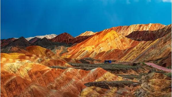 今天從嘉峪關(guān)出發(fā),前往【張掖丹霞地貌景區(qū)】看丹霞日落,非常的壯觀。在日落之前,我們前往張掖七彩丹霞,赴一場丹霞日落的光影盛宴。張掖七彩丹霞被《中國國家地理》評為中國最美的七彩丹霞地貌之一,有人親切地將其形容成“五花肉”,也有人文藝地形容為“上帝打翻的調(diào)色盤”。在不同的光影之下,七彩丹霞呈現(xiàn)不同的色彩,號稱“最具色覺沖擊力”的七彩丹霞,而日落下是七彩丹霞最美的時刻。這里不僅是眾多攝影愛好者的天堂,還是很多電影的取景地,張藝謀的電影《三槍拍案驚奇》、姜文執(zhí)導(dǎo)的電影《太陽照常升起》、知名電視劇《神探狄仁杰》,都曾在這取景。