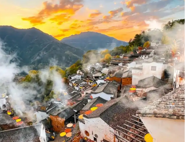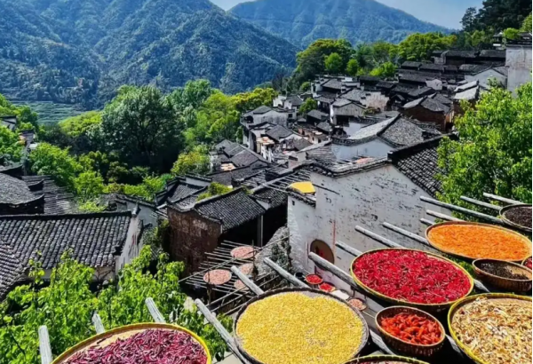 來(lái)到嶺腳村,拍攝嶺腳村的古民居和古道。嶺腳村是徽饒古道的起點(diǎn),古老的石板路蜿蜒穿過(guò)村莊,可以拍攝村民在古道上的行走場(chǎng)景,以及古道兩側(cè)的田園風(fēng)光。