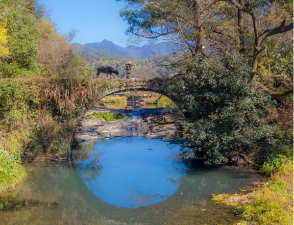 到達(dá)官坑后,拍攝官坑的古村落風(fēng)貌。官坑的建筑風(fēng)格獨(dú)特,以青石板路和古老的民居為特色??梢耘臄z村民在古橋上的活動(dòng),以及官坑村周圍的山水環(huán)繞的美景。