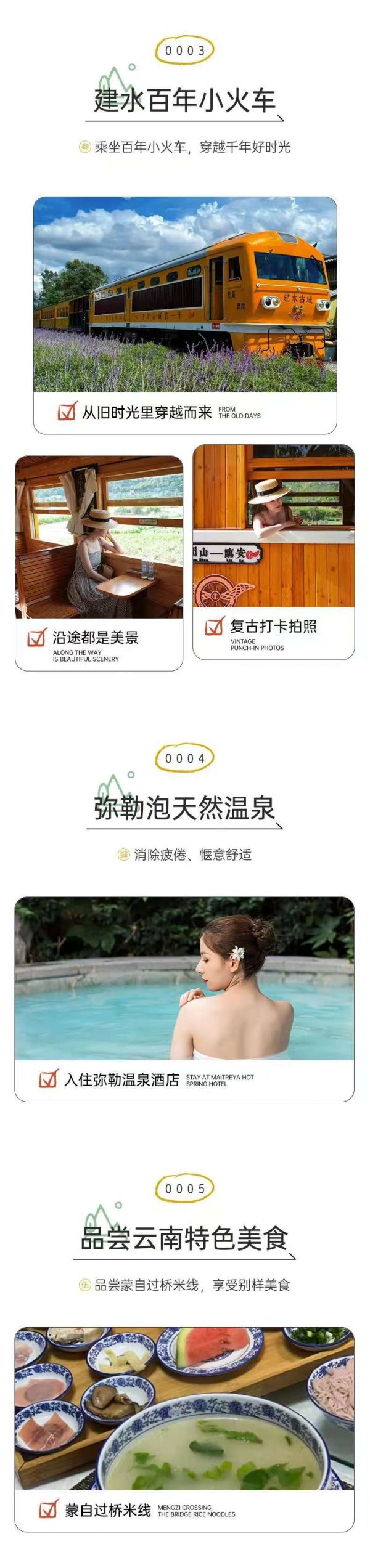 特色亮點(diǎn):體驗(yàn)蒙自碧色寨cosplay服裝一套;旅行三寶+戶外頭巾+隨車配備礦泉水;