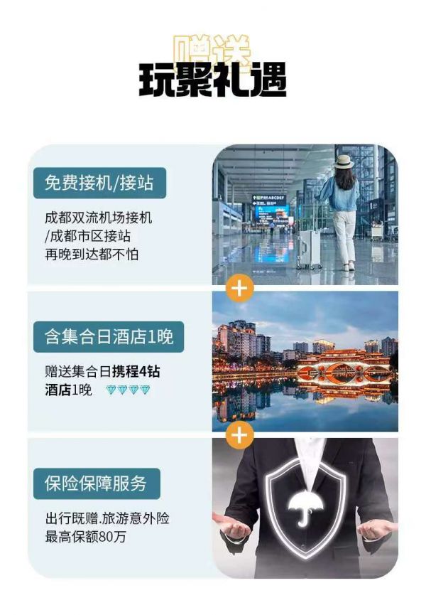 門票:樂山大佛門票、峨眉山門票、報國寺門票、熊貓基地景區(qū)門票、都江堰景區(qū)門票
