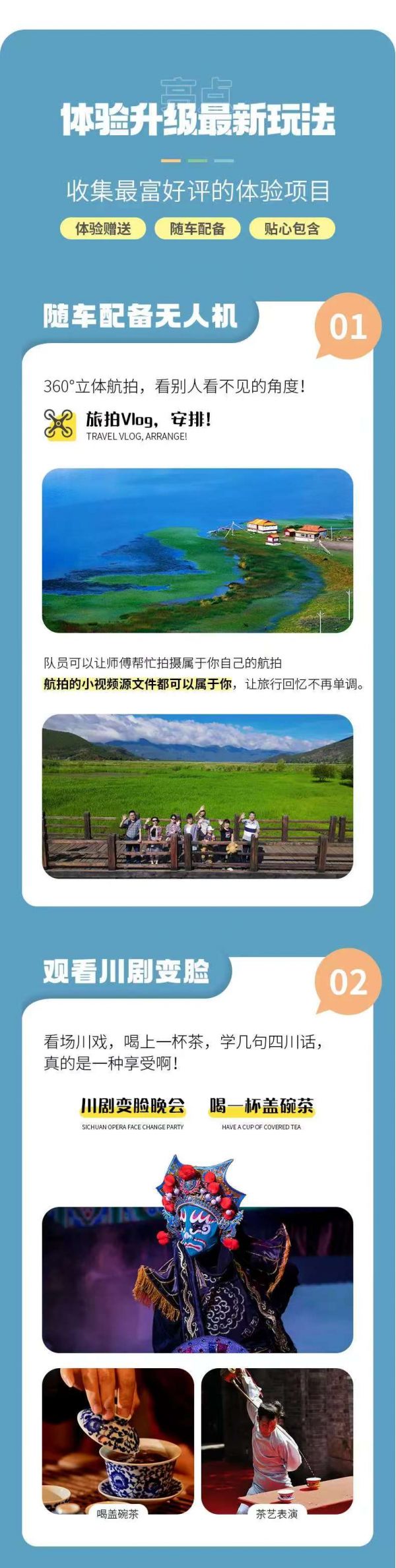 返回成都統一散團(由車上游客協商一致送至統一散團點,若協商不成則由司機送至三環(huán)內就近地鐵站散團),結束本次愉快的旅行。由于川西地區(qū)路況復雜,有可能因為堵車而發(fā)生延誤,請大家盡量預定第二天返程的航班或車次。