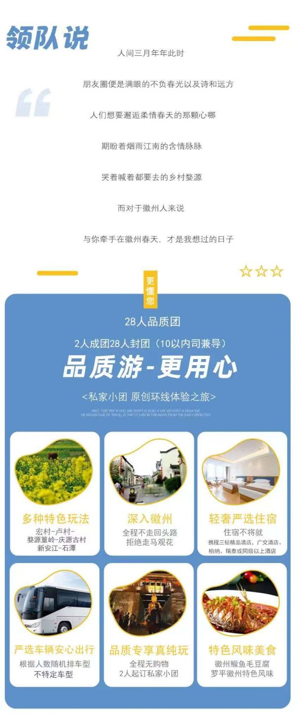 下午徒步蜀源靈山,在養(yǎng)分充足的春天里,漫步花海叢中,感受古老歷史下的小城。約3:00左右結(jié)束行程,返程 預(yù)計(jì)下午16:00抵達(dá)黃山市區(qū),建議購(gòu)買16:30以后或次日返程票。
