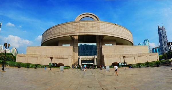上海博物館創(chuàng)建于1952年,原址南京西路325號舊跑馬總會,1959年10月遷入河南南路16號中匯大樓,現(xiàn)址上海市中心人民廣場的南側黃浦區(qū)人民大道201號。1993年8月,上海博物館新館開工建設,1996年10月12日全面建成開放。上海博物館建筑總面積39200平方米,占地面積1.1萬平方米,地下二層,地上五層,高29.5米,總投資5.7億元。新館是方體基座與圓形出挑相結合的建筑造型,具有中國“天圓地方”的寓意。館名“上海博物館”為上海第一任市長陳毅書寫。